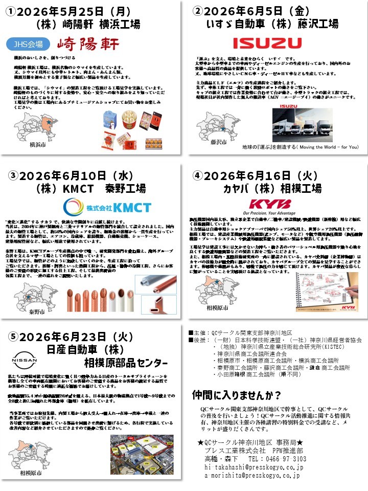 第6712回 QCサークル神奈川地区 事業所見学交流会開催案内