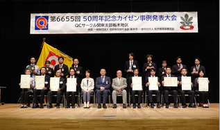 | 9月22日(金)宇都宮市文化会館で【第6481回 QCサークル栃木地区 秋のカイゼン事例発表大会】が開催されました。 発表サークルの皆様(向かって左から発表順)とQCサークル栃木地区の地区長と世話人(中央) |