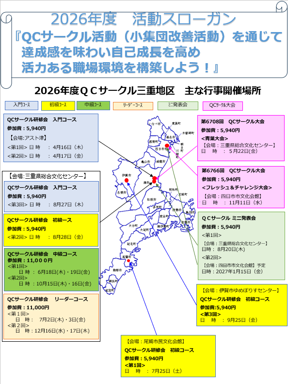 QCサークル三重 研修会 「第1、2回 入門コース」 開催ご案内